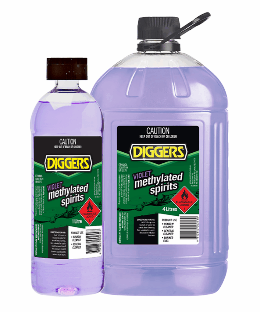 DIGGERS™ Violet Methylated Spirits is a denatured alcohol, dyed violet for identification purposes. It is suitable for a variety of cleaning applications.