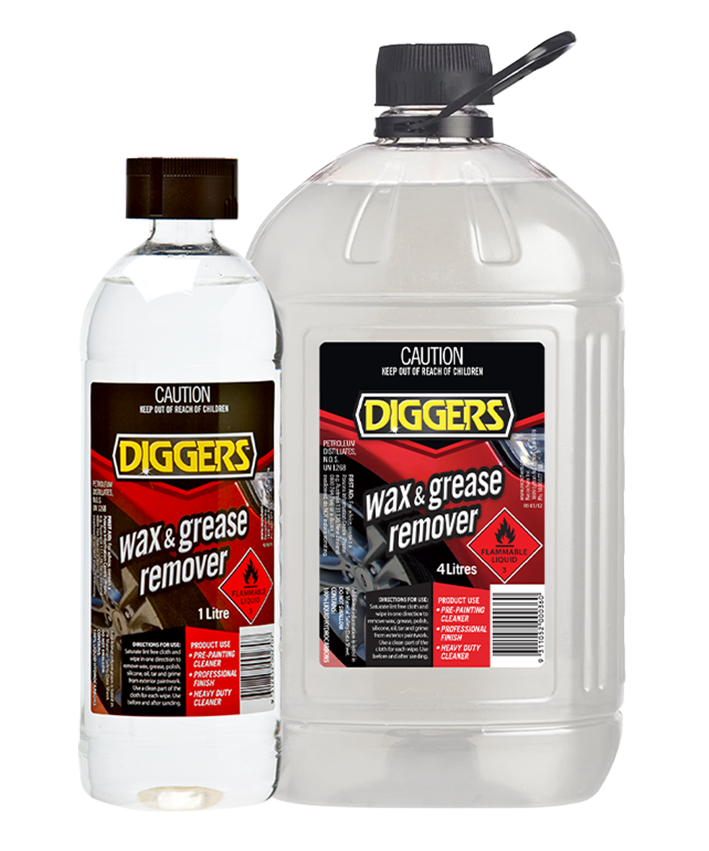 DIGGERS™ Wax & Grease Remover is a highly effective surface preparation treatment which removes wax, grease, polish, oil, tar, grime, glue, and most other contaminants prior to sanding and finishing.