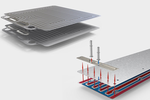 EV battery cooling plates regulate the temperature of the battery pack and some of the electronics by circulating coolant between two thin aluminum (Al) sheets. Battery fluid goes through tubes, cold plates, or other components that surround the battery cells and carry heat to another location, such as a radiator or a heat exchanger. Battery plates carrying the liquid prevent direct electrical contact between the cells and the liquid coolant.