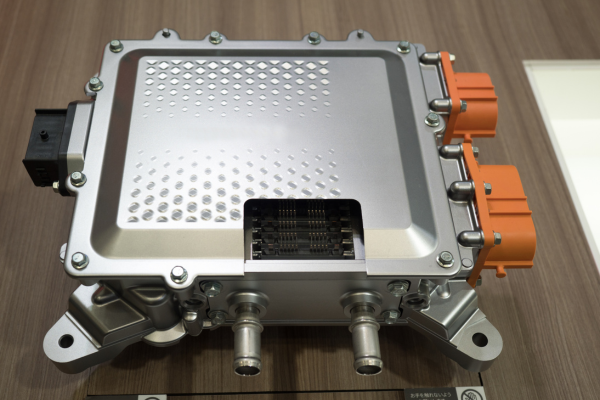 An inverter is an electrical device that converts sourced electricity from DC (Direct Current) to AC (Alternating Current). DC power is fed to the primary winding in a transformer within the inverter housing. Through an electronic switch, the current’s direction flow is continuously and periodically reversed. The in/outflow of electricity produces AC current in the transformer’s secondary winding circuit. Ultimately, this induced alternating current electricity provides power for an AC load—for example, an electric vehicle’s (EV) traction motor.